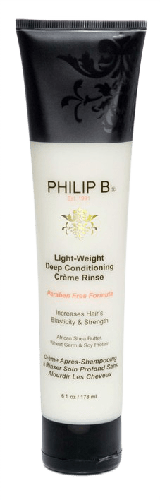 Philip B. Light-Weight Deep Conditioning Crème Rinse is een lichtgewicht conditioner voor het haar die u weer uitspoelt. Afrikaanse shea boter, tarwekiemen en sojaproteïnen maken uw gespleten haarpunten weer gezond en zorgen voor extra volume en glans. Uw haar wordt makkelijk doorkambaar en krijgt meer veerkracht.